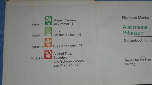 Sena knyga apie augalus vokiečių kalba. Alle meine Pflanzen, 1985, 153 psl, su spalvotomis iliustracijomis Skirta vaikams, bet ir suaugusiam galima pavartyti.