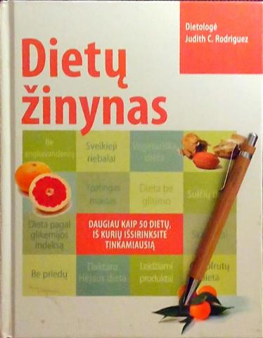 Daugiau kaip 50 dietų, iš kurių išsirinksite tinkamiausią! Geriausias sveikatos stiprinimo ir tinkamo svorio išlaikymas yra toks pasirinktas gyvenimo būdas, kuris iki pat senatvės išlaiko gerą sveikatą ir netrukdo gyventi visavertį gyvenimą. Knygoje aprašoma dietų istorija, pateikiami moksliniai argumentai, dietų privalumai ir trūkumai, papildomos informacijos šaltiniai ir valgiaraščių pavyzdžiai. "Dietų žinynas" padės įvertinti dietas ir iš jų išsirinkti pačią tinkamiausią.