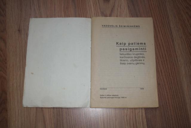 +SIUNTIMO IŠLAIDOS. 1990 leidybos vadovėlis "Kaip patiems pasigaminti" : lietuviško krupniko, karčiosios degtinės, likerio, užpiltinės ir kitų gėrimų. Knyga parengta pagal 1935 metų receptus, parašyta neredaguota to meto lietuvių kalba. Knygoje iš viso 76 receptai. Mainau ne originalą, o jo šviestą kopiją.