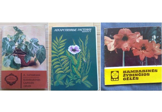 Lučinskienė A. "Kambarinės lapinės gėlės" - 1980 m, 147 psl., 2 eur. Formatas - 16,5x11,5cm (d) Atvirukų rinkinys "лекарственные растения" - 1987 m, kaina 2 eur, Didelių atvirukų rinkinys. Kiekvieno atviruko vienoje pusėje yra kažkurios vaistažolės piešinys, kitoje - jos aprašymas ir panaudojimas. Rinkinyje - 32 atvirukai. Formatas - 21x15 cm. Galima kabinti ant sienos :)