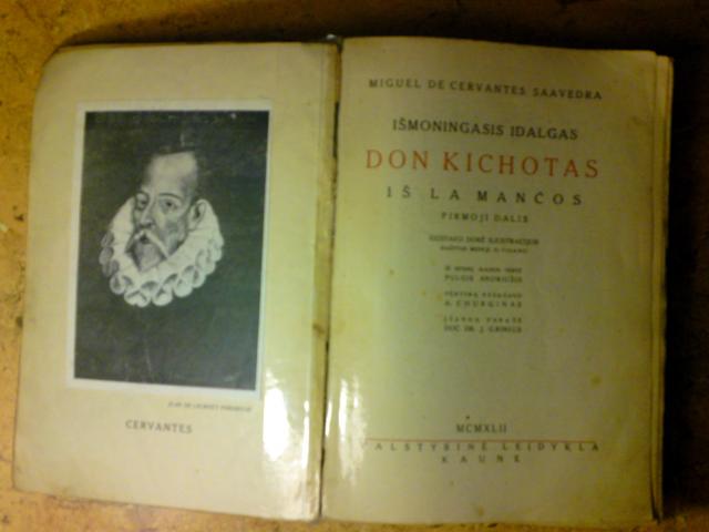 Labai senos, turincios savo verte antikvarines Servanteso knygos Don Kichotas I ir II dalys.