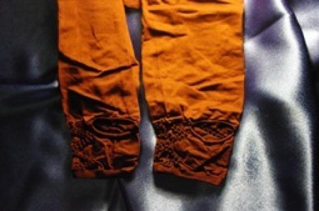 Nenešiotos. Užsitempiančios gerokai virš kelių. Rudos spalvos. Su įsimovimu kulniukams.