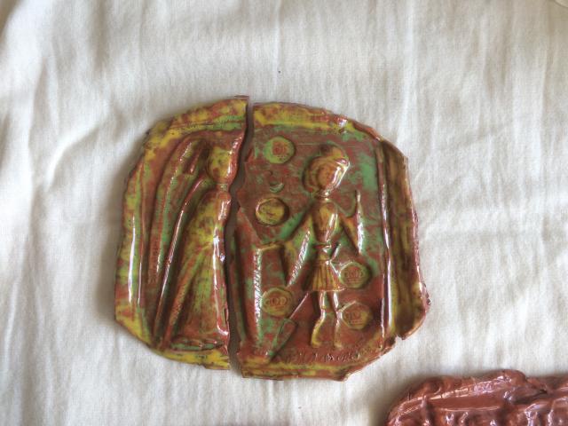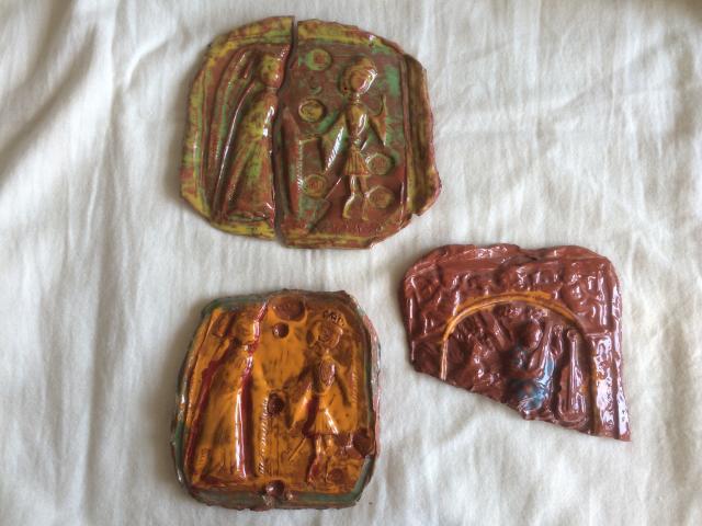 Senovinių koklių kopijos. Suskilę dar iki glazūruojant, bet kokioj sodyboj gali būt į temą.
