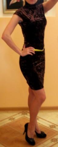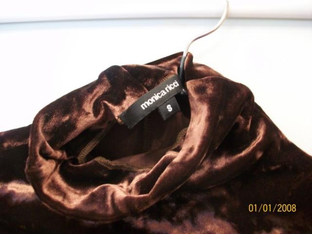Porą tik kartų užsidėta ruda barchatinė suknelė iki kelių. Labai dailiai atrodanti, paryškinanti figūra. Brandas - Monica Ricci. Būklė tikrai ideali.