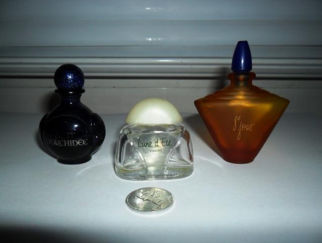 Padėta 1 cento moneta, kad matytumėte kokio dydžio buteliukai. Kaina - klauskite. Pirkti Prancūzijos sendaikčių turguje.