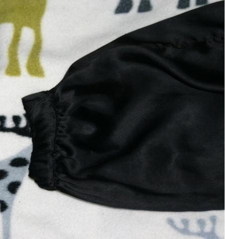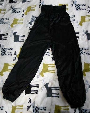 Juodas, atlasinis. Krutine prilaiko gumeles, tad gan universalus dydis. Galima nesioti ir kaip itin nukarusias kelnes. Manau,graziausiai atrodytu ant paneles iki 174cm.