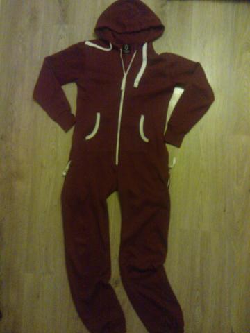Tamsiai raudonos spalvos kombinezonas. Mažai dėvėtas. Labai minkštas ir šiltas. Nėra įplyšimų.