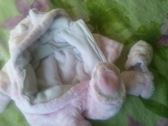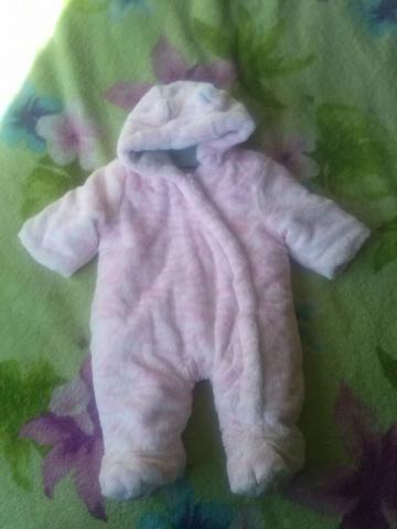Siltas kombinzoniukas saltam rudeniui ir ziemai ruzavai balto kailiuko mielas ir minkstutis su ausytem ir pedutem prisegamos pirstynites mazai devetas