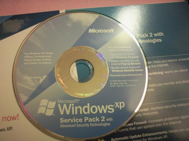 Windows XP service pack-2 kompaktinis diskas su aprasymais ir dekliuku kompiuteriams su XP operacine sistema atnaujinimai.