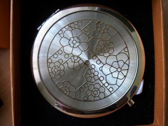 Naujas, kompaktiškas veidrodėlis su dėžute. Viena pusė didina, kt paprasta, yra barchatinis maišelis veidrodėliui nešioti. +5lt siuntimas neskubus, +7lt skubus