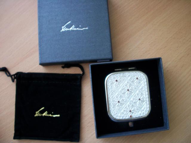 Naujas, kompaktiškas veidrodėlis su dėžute. Viena pusė didina, kt paprasta, yra barchatinis maišelis veidrodėliui nešioti. +5lt siuntimas neskubus, +7lt skubus