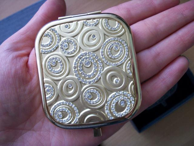 Naujas, kompaktiškas veidrodėlis su dėžute. Viena pusė didina, kt paprasta, yra barchatinis maišelis veidrodėliui nešioti. +5lt siuntimas neskubus, +7lt skubus
