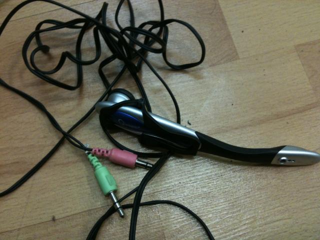 Kompiuterine ausine - mikrofonas. Veikia puikiai. Truksta tik vienos detales, kuri uzsideda, kad laikytusi ausine ant ausies. Bet isikisus i ausi, laikosi ir be to kabliuko..