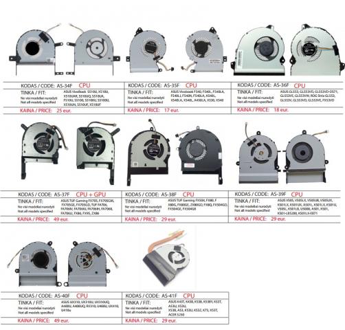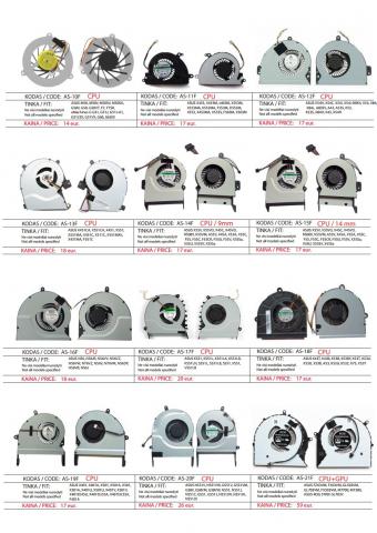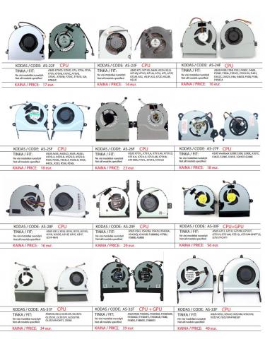 PIGIAUSIAI. ASUS kompiuterio aušintuvai, cooler, aušintuvas, ventiliatorius Pristatymas visoje Lietuvoje per 1-2 d.d. (DPD kurjeriu, paštomatu, paštu, galima atsiimti vietoje). Suteikiama garantija 12 mėnesių. Visa konsultacija, remonto darbų užsakymas: +37063977277 / info@marsietis.lt / Vilniaus 230, Šiauliai Daugiau informacijos: www.marsietis.lt 1. ASUS V505, V505LX, V505UB, V505UX, K501LX, K501UX, A501L, K501LX, K501U, V505L, K501LB, U5000, A501, K501, K501-LB5200, K501LX-EB71. Kaina 49 eur. 2