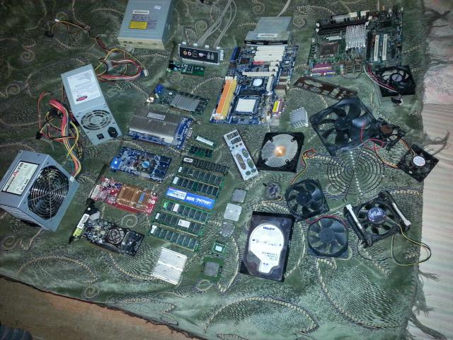 kelios vaizdo plokstes ddr3 po 512mb 128bit traukia zaidimus, trys ide hdd 180gb - 80gb - 20gb, keturi ddr SDRAM PC133 - 128 MB ,ir laptopiniai ram ddr1- 512mb, ir sdram 64mb,ir 1gb ram kaulas ddr , laidai, hdmi jungtis, vintiliatoriai, tinklo lan plokste 100mb/s, galiu atsiusti visas dalis,uz koki naudinga daikta, turiu ir daugiau daliu cia tik keletas...