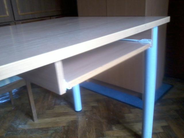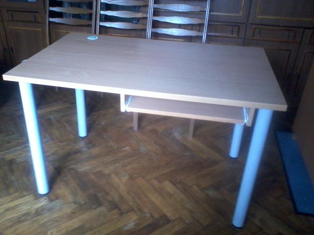 Parduodu šviesios medienos kompiuterio stalą su vieta klaviatūrai.