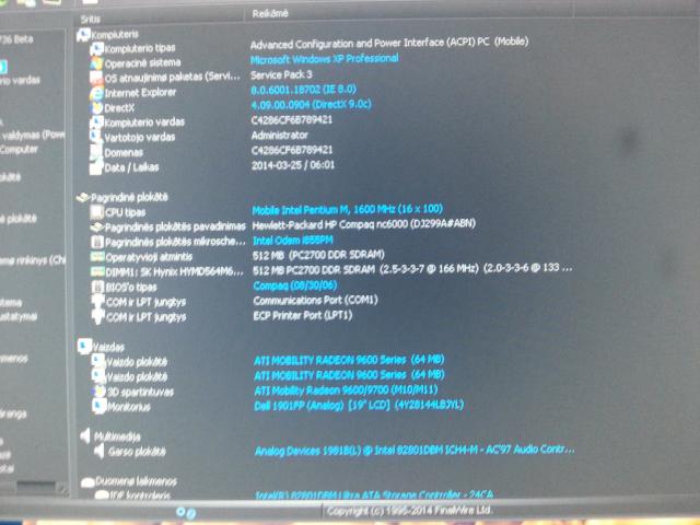 Compaq nc6000 veikiantis vezant nuluzo matricos dangtis liko sleifas pajungus isorini monika veikia puikiai 20gb hdd xp pro stovis buvo 9/10
