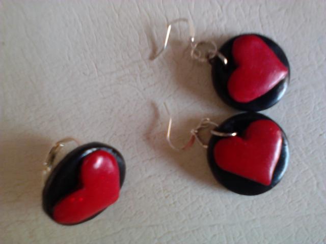 Ranku darbo ziedo ir auskaru komplektas is modelino, kabliukai pasidabruoti, ziedo dydis reguliuiojasi.