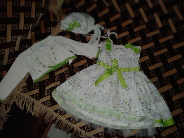 Komplektas. Suknele, megztukas, kepure. 68cm