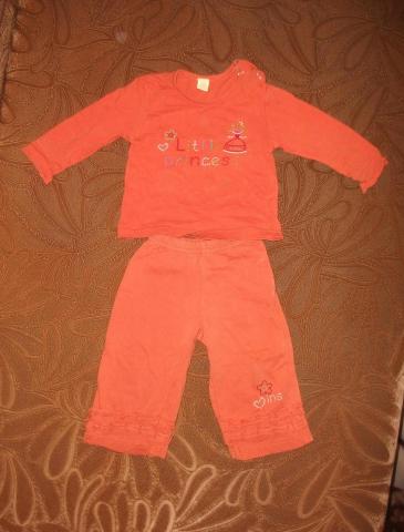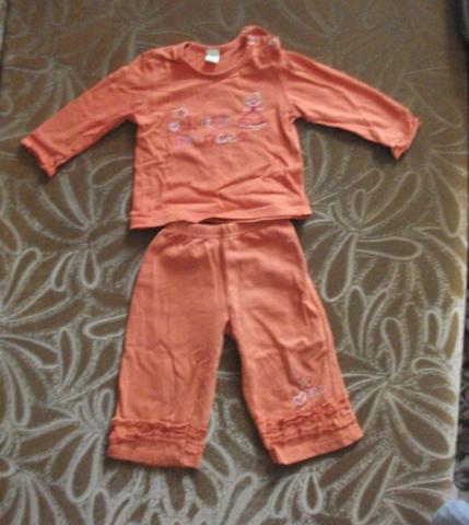 Oranžinės spalvos, marškinėliai-palaidinė ir kelnytės.