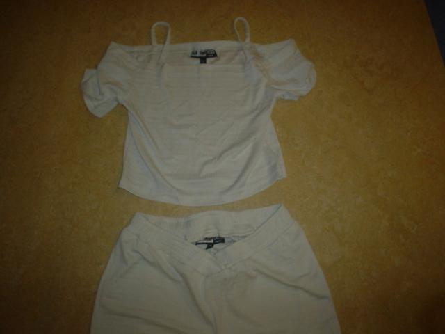 Ilgos plačios kelnės, trumpa palaidinukė, smėlio spalvos, dydis M
