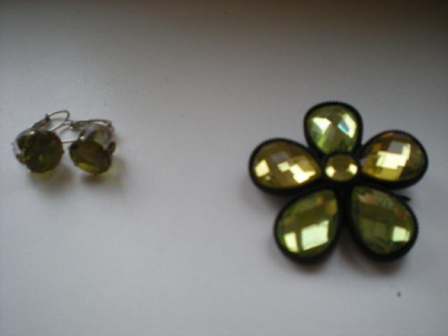Žali auskarai ir sagė. Nauji, nebuvau užsidėjus net. Perkant patiko, dabar nebe :D