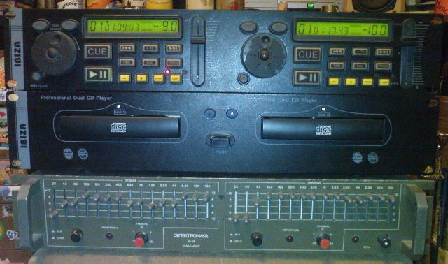 grotuvas Ibiza Professional dual DJ, dvieju daliu, dvieju cd, laido defektas - kartais dingsta kontaktas tarp grotuvo ir valdymo bloko, taciau beda tik juos sujungianciame laide. Elektronika E-06 ekvalaizeris - netikrintas.