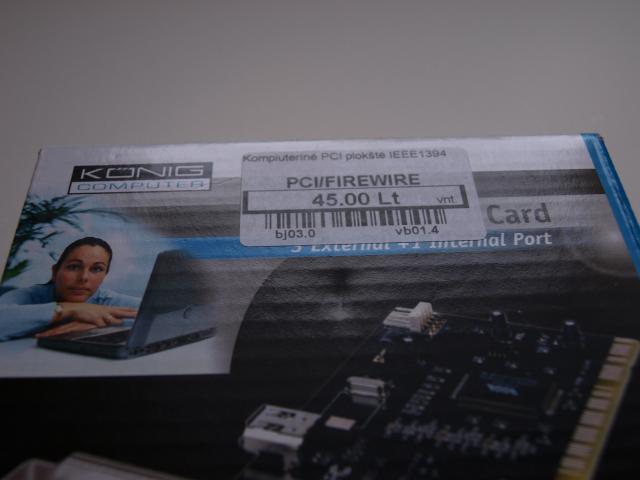 Pilnas pavadinimas CMP-FW1394/3P FIREWIRE PCI KAART Konig Visiškai nauja