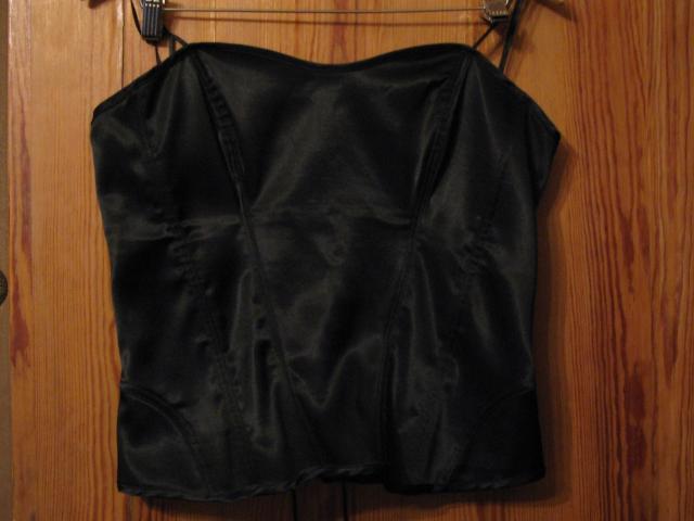 Juodas korsetas. siutas, sonuose, bet ant kuno nesimato. ilgis 44