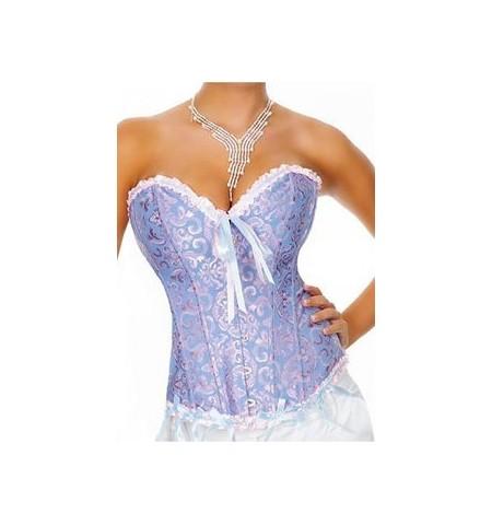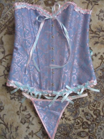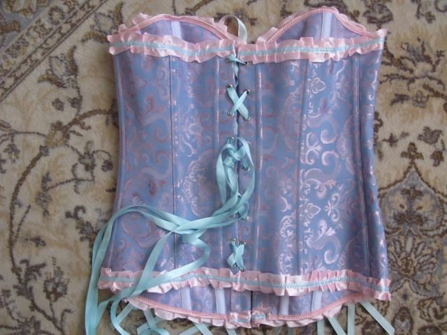 Naujas violetinės spalvos korsetas dailintas rožinės spalvos raštais. Suvarstomas iš nugaros, užrišamas kaspinas; Susegamas priekyje daugybe kabliukų. Komplektuojamas kartu su derančiomis kelnaitėmis su juostele; M dydis Krūtinė: 86-94 cm; kaušelio dydis: B-C; liemuo: 64-71 cm; klubai: 91-99 cm;