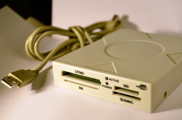 Kortelių skaitytuvas. Galima naudot kaip vidinį - įstatomas floppy drive vietoje. Galima kaip išorinį - korpusas yra uždaras ir yra ilgas USB laidas. Tik neturiu draiverių CD.