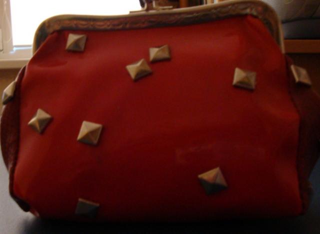 Sena mamos kosmetinė,lakinė raudona,metaliniai kvadračiukai iš diržo ;}