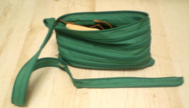 Visas krepšelis sudarytas iš vieno ilgo užtrauktuko.Originalu ir įdomu :)
