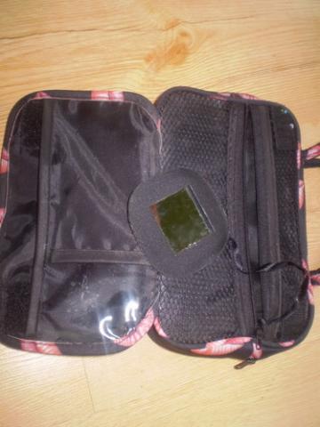 naudota, bet visai nedaug, tik tiek, kad buvo sudėta kosmetika ir padėta spinton ;) tokia graži, juoda su bučinukais, pakankamai talpi :)