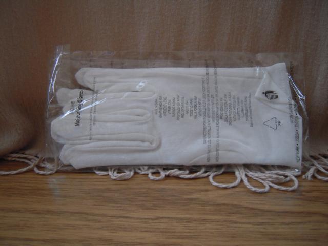 Švelnios, nei kartą nenaudotos kosmetinės pirštinės, skirtos išlaikyti drėgmę naktį, pasitepus kremu ar aliejais.