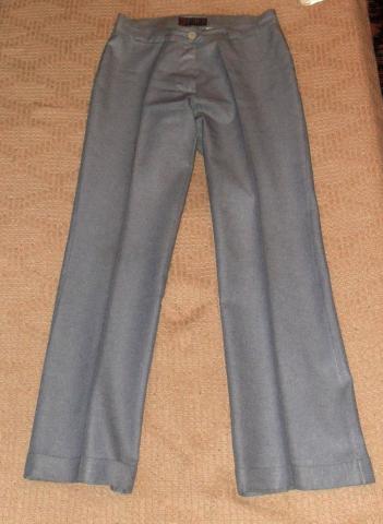 Pora kartu uzsidetos, be defektu sviesiai pilkos kelnes tiesaus pasiuvimo ismatavimai ramybes busenoje: liemuo 38 cm, liemens ilgis 25 cm, klubai 46 cm, visas ilgis 100 cm