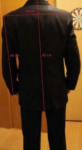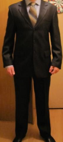 Kaip naujas. Išmatavimai: Kelnės: ilgis 107 cm, apimtis 85 cm. Švarkas: ilgis 81 cm, plotis per pečius 50 cm, rankovės ilgis nuo peties 65 cm.