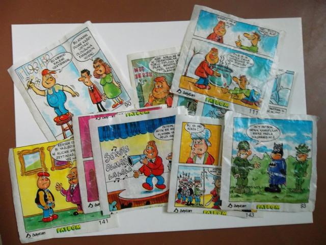 iš tų laikų kai buvo parduodamos kramtomos "love is..", :the flinstones" , "turbo".. :) kokia kalba užrašyti nežinau, tokios nesimokiau :D