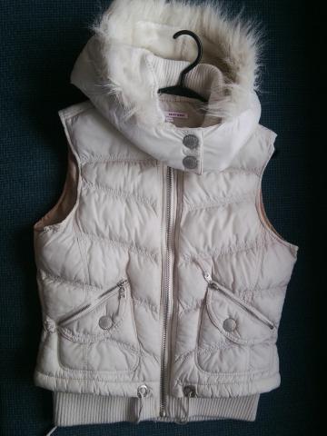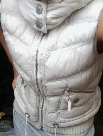 Kreminės spalvos liemenė, patogi ir švelnios medžiagos, dėvėta vieną kartą. Dydis L, bet tiktų ir M.