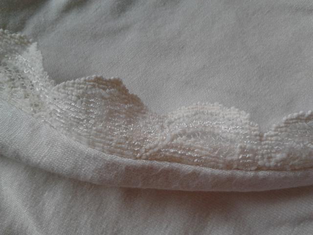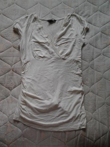 Rašo dydį S, tačiau puikiai tiktų ir M-L dydžius nešiojančioms. Porą kartų vilkėta palaidinė, kreminės spalvos, gili iškirptė, apsiūta nėrinukais. Šonuose paraukta. H&M.