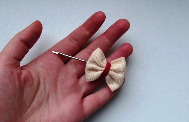 Rankų darbo mielas mažas kreminis kaspinėlis segtukas. Galiu padaryti įvairių dydžių ; )
