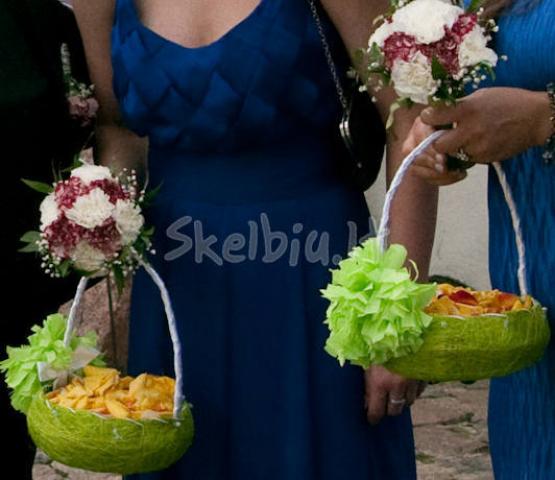 Parduodu tris vienodus žalsvus krepšelius žiedlapiams. Rankenėlės apsuktos balta satinine juostele, šone yra žalsva gėlė. Labai gražiai atrodo, patiks toms, kurioms patinka elegancija. Vieno krepšelio kaina 15Lt. Krepšeliai randasi Vilniuje, bet galiu atvežti į Kauną.