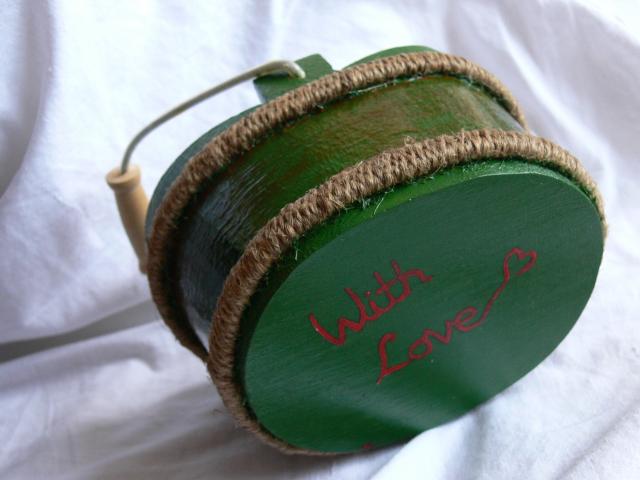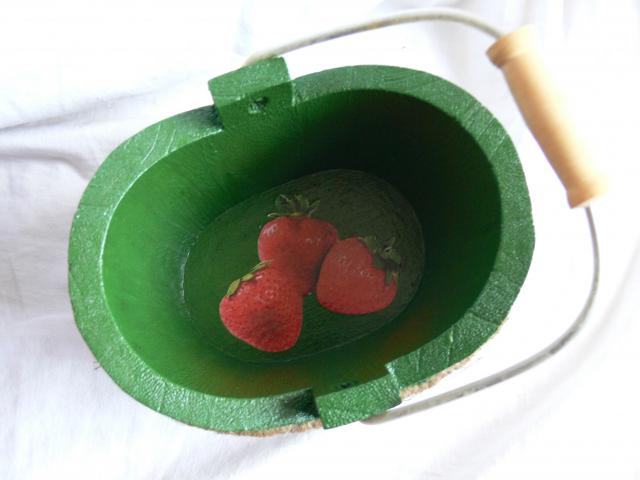 Medinis krepšelis, dekoruotas dekupažo technika. Nedidelis. Puiki dovana būtų