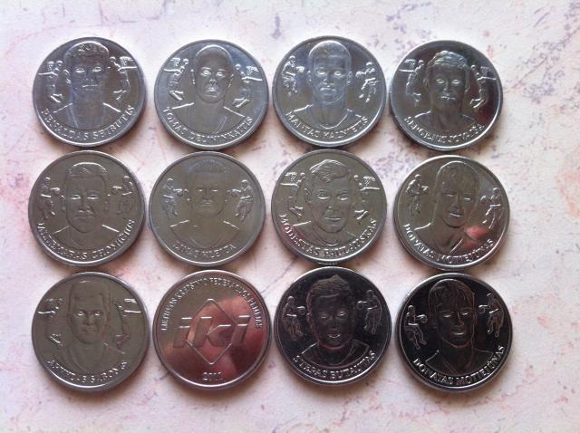 Parduodu krepšininkų medalius arba keičiu į 1lito progines monetas ES pirmininkavimui, VU, Jurgutį, ar Valdovų rūmams. Yra M. Paulauskas, S. Jovaisa, R. Seibutis, A. Sabonis, M. Kalnietis, D. Motiejunas, S. Butautas, V. Chromicius, L. Kleiza, T. Delininkaitis. Taip pat turiu tos pacios kolekcijos iki medali
