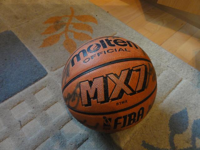 Krepšinio kamuolys Molten mx7 su krepšininkų parašais (23 krešininkų parašai). 7dydžio.