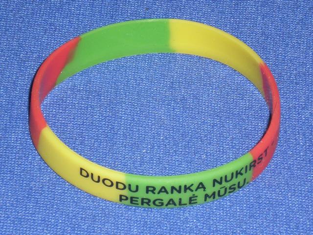 Krepsinio sirgaliaus silikonine apyranke su trispalve ir uzrasu.