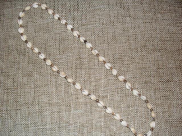 Ilgas vėrinys iš kriauklių, su beveik nepastebimu defektu-2 nukritusios kriauklės ir viena nuskilusi.Ilgis 40x2 cm.