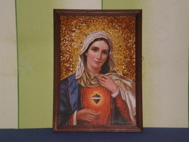 Krikscioniu religijos paveikslas su gintarais- sventoji marija