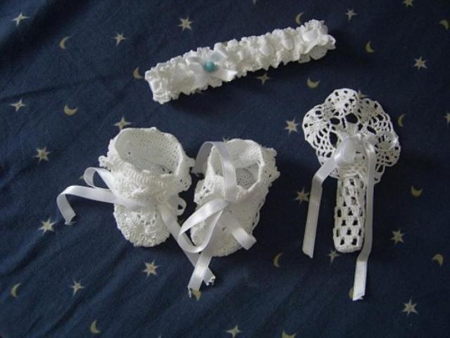 tinka 6 men mergaitei apie 7 kg. galiu nunerti ir kitokiu matmenu. Prie sukneles pridedamas raistis ant galvos, batuku pora ir papuosimas zvakei.