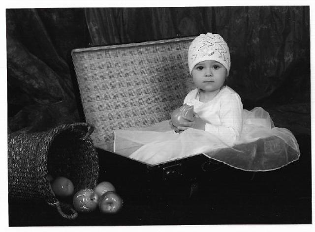 Krikstynu suknele trumpom rankovytem ir Next balta puosni bliuskute prie jos. Dydis 114 cm Tinka nuo 6 men iki 2 metu, nes liemuo pasireguliuoja su risama juostele, o ilgis islieka iki zemes. Nuotraukoje 1,5 metu mergaite. Suknele pasiuvineta baltais